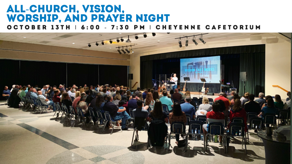 Join us for our quarterly All-Church Vision, Worship, and Prayer Night on October 11th from 6:00 PM – 8:00 PM.